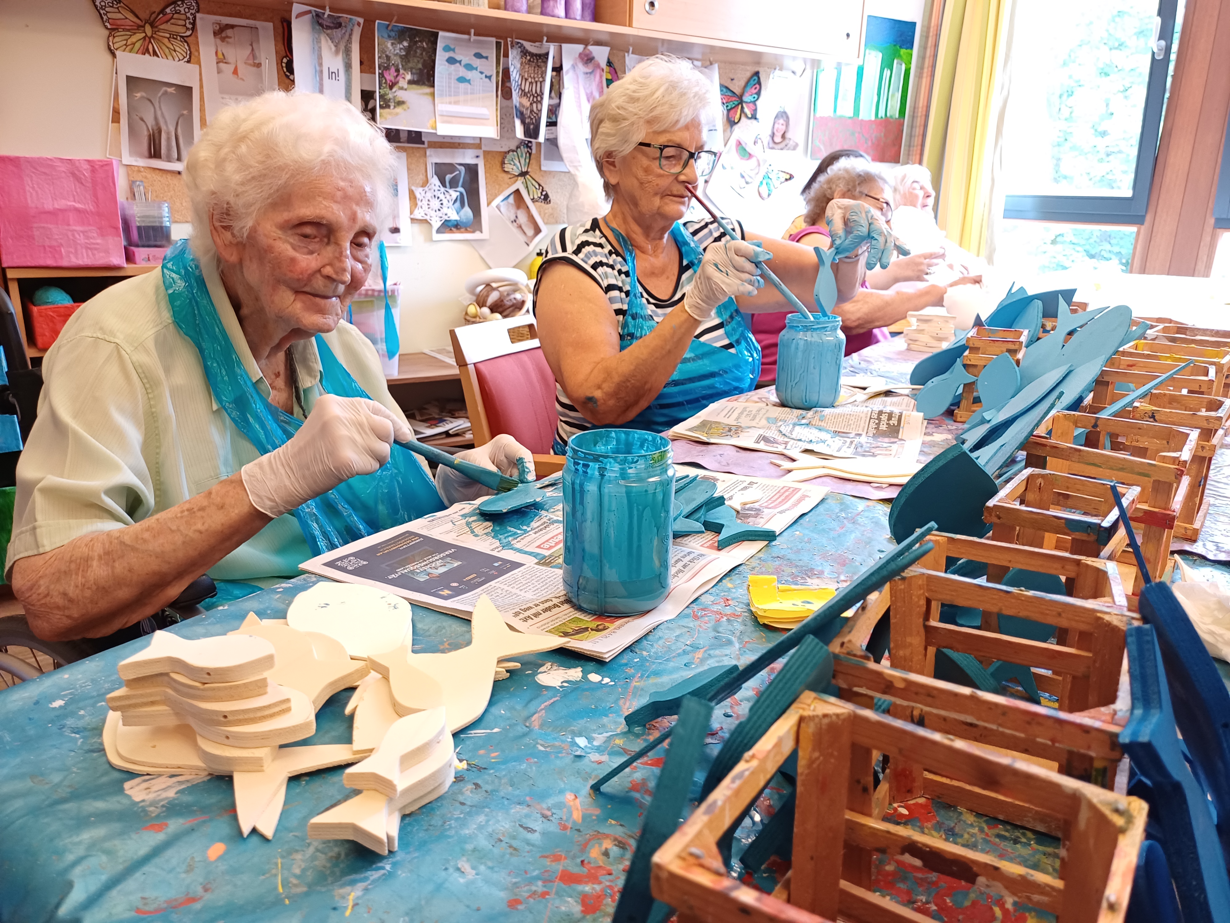Im SeneCura Sozialzentrum Grafenwörth traf man sich vor Kurzem zu einer geselligen „Kreativrunde“. Mit den Bewohner:innen des Hauses wurde nämlich fleißig gebastelt und sich kreativ ausgetobt. Gemeinsam hat sich die Bastelgruppe vorgenommen, unterschiedlich große Holzfische zu bemalen. Die Bewohner:innen sind schon jetzt mehr als stolz auf ihr entstehendes Kunstwerk und das Haus ist bereits auf das besondere Endergebnis gespannt.